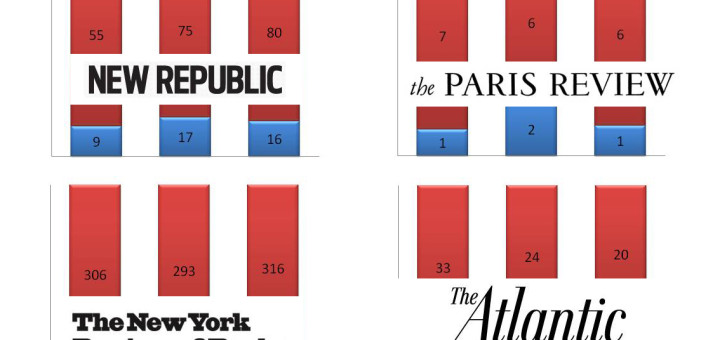 This example is typical of the conversations which frequently occur when gender bias in publishing is raised. Anyone who dares to assert that the bias is there, it’s real and it matters is immediately met with howls of indignation. It’s not real (it is). Even if it was, it doesn’t matter (it does). Even if it is, women are at fault due to their own lack of motivation or their failure to lean in (they’re not). VIDA, an organisation for women in literature, has compiled statistics on the male/female ratios of some of the most high profile magazines in America over the last three years. These show, unequivocally, there is a huge disparity in the number of women published, and the number of women’s work covered/reviewed in these publications. The bias also exists in literature awards, where even when a woman does win, the media’s angle on the story is still about a man.